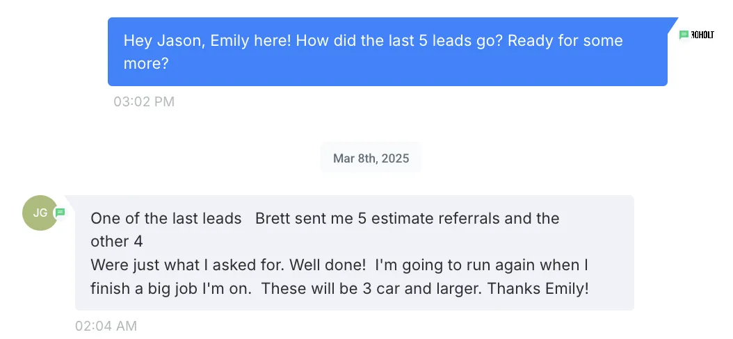 “The leads we’re good, and I just wanted to follow up with you to let you know that it is going well.”